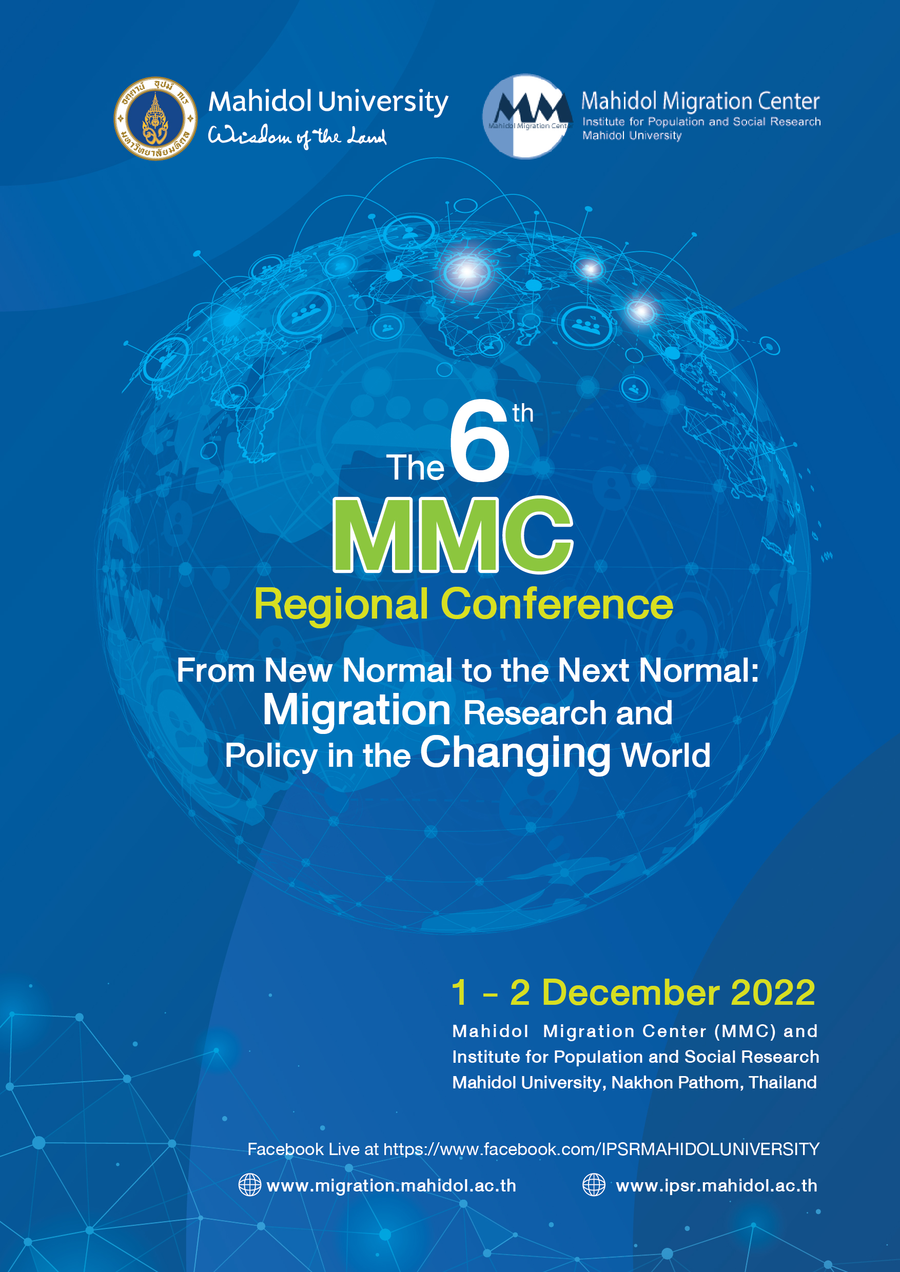 The 6 th MMC Regional Conference on “ From New Normal to the Next Normal: Migration Research and Policy in the Changing World ”, organized by Mahidol Migration Center, Institute for Population and Social Research, supported by Mahidol University, in Collaboration with;